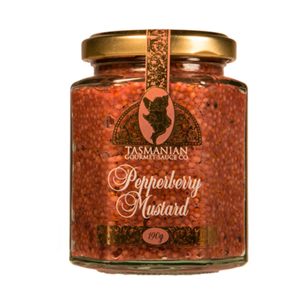 The spicy heat of the Tasmanian Pepperberry provides this seeded mustard with distinctive taste and colour – deep burgundy. This is a really interesting mustard that showcases one of the unique flavours of the Tasmanian wilderness. Interestingly, the Pepperberry loses some of its heat as we cook it but retains its flavour.